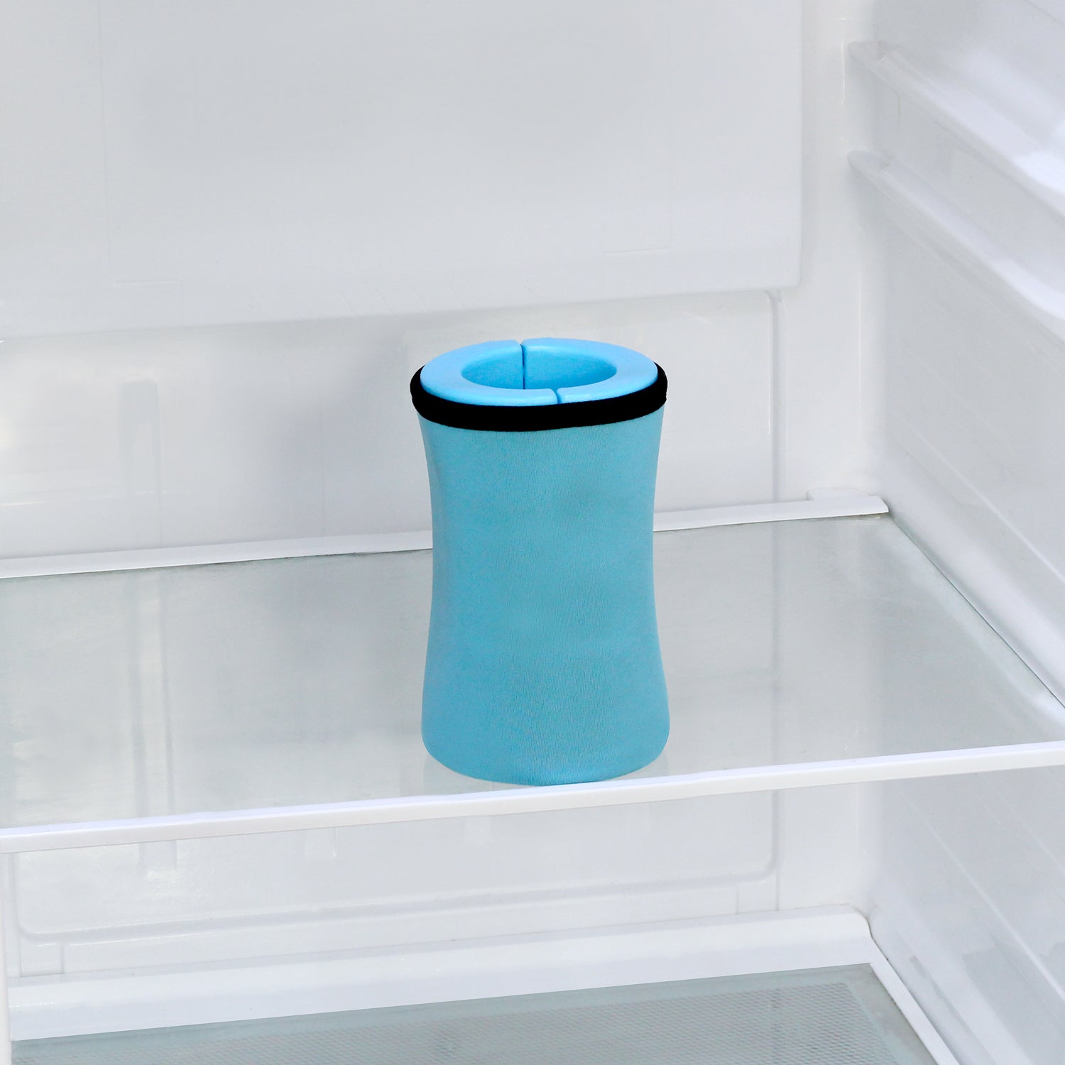 The iCube insulated, double-walled, instant beverage chiller for 12oz. slim cans and bottles by CaddyO is an innovative chilling device that combines proprietary gel-infused cooling technology with the convenience of an insulating neoprene sleeve.